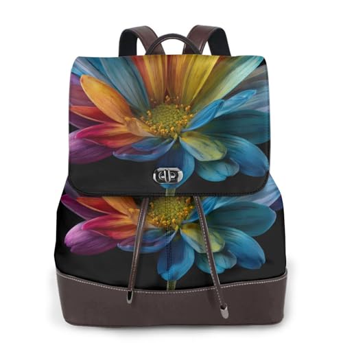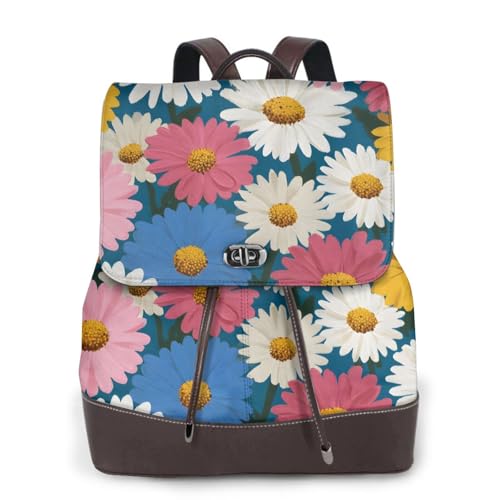 Multi-Color Daisy Print Leather Women's Backpack Travel Bag Ladies Versatile Small Backpack Business Leisure,One Size