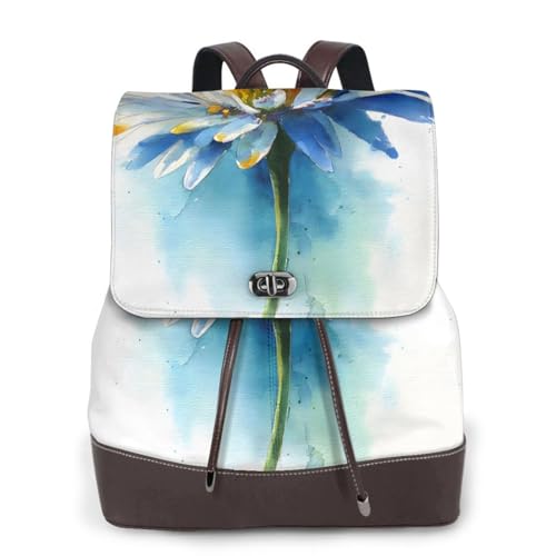 Watercolor Daisy Print Leather Women's Backpack Travel Bag Ladies Versatile Small Backpack Business Leisure,One Size