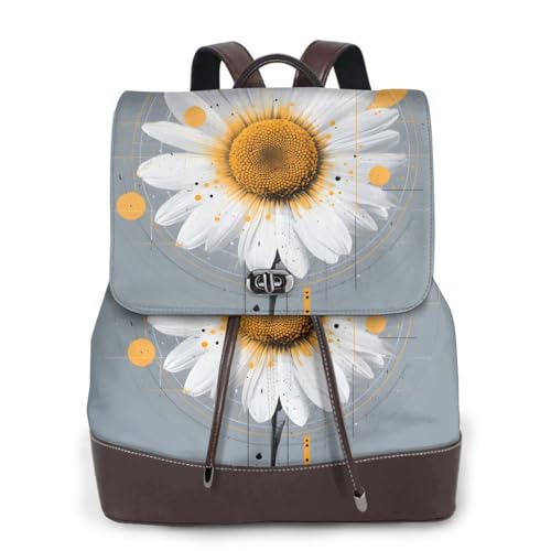 Whimsical Daisy Print Leather Women's Backpack Travel Bag Ladies Versatile Small Backpack Business Leisure,One Size