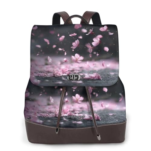Falling Cherry Blossoms Print Leather Women's Backpack Travel Bag Ladies Versatile Small Backpack Business Leisure,One Size