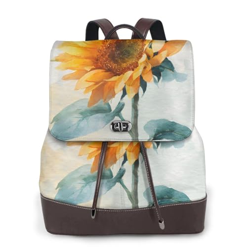Watercolor Sunflower Print Leather Women's Backpack Travel Bag Ladies Versatile Small Backpack Business Leisure,One Size