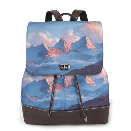 Mountain Range Print Leather Women's Backpack Travel Bag Ladies Versatile Small Backpack Business Leisure,One Size