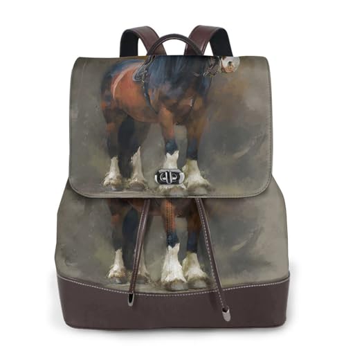 Horse Print Leather Women's Backpack Travel Bag Ladies Versatile Small Backpack Business Leisure,One Size
