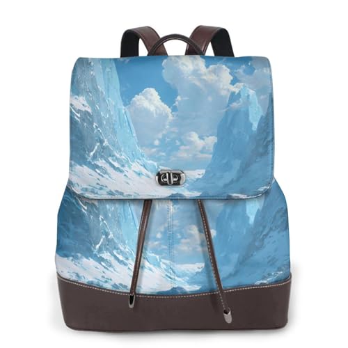 Glacier Scenery Print Leather Women's Backpack Travel Bag Ladies Versatile Small Backpack Business Leisure,One Size