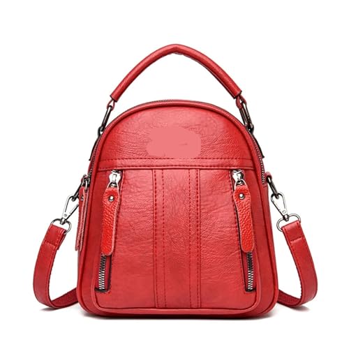 QAUUCP Leather Rucksack Bag for Women 4 In 1 Leather Backpacks Multifunction Female Shoulder Bag Fashion Ladies Small Backpack Travel Bags for Girls Messenger(Red)