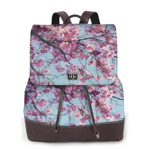 Romantic Cherry Blossoms Print Leather Women's Backpack Travel Bag Ladies Versatile Small Backpack Business Leisure,One Size