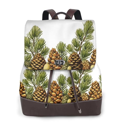 Pine Cone Border Print Leather Women's Backpack Travel Bag Ladies Versatile Small Backpack Business Leisure,One Size