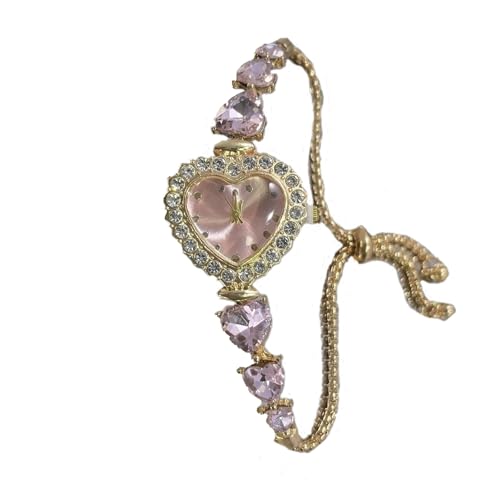 Lkvent Watches Smart 2pcs Women Watch Heart Shaped Diamond Bracelet Wristwatch Analog Quartz Wrist Watches for Ladies Digital(Gold)