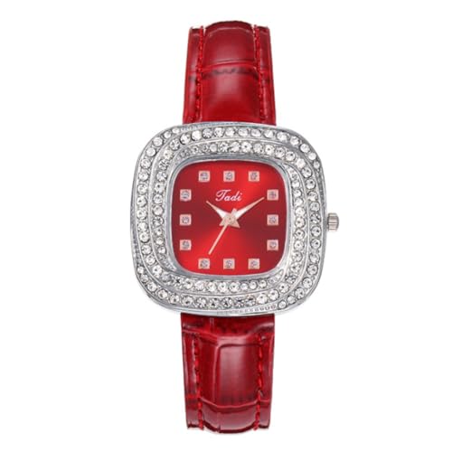 Lkvent Watches Smart Women's Leather Quartz Watch, with Stone Set Case, Analog Quartz Wrist Watches for Women Ladies Digital(Rot)