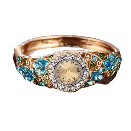 Lkvent Watches Smart 2-Piece Women Watch Elegant Bangle Round Dial with Flower Wrist Watches Alloy Ladies Wristwatch is a Digital(Blu)