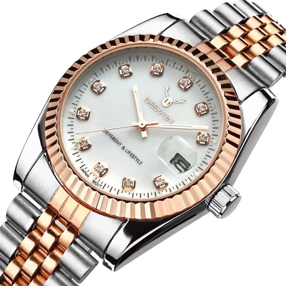 Ladies Gold Watch Ladies' Watch Ladies Gold Unisex Watches Quartz Steel Strap Stainless Women's Womens Smart for Android Silver Women Exercise for (, One Size)