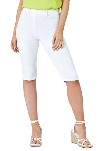 Roman Originals Knee Length Jeggings for Women Ladies Stretch Denim Shorts Jeans Cropped Trouser Capri Pants Summer Cotton Legging Pedal Pusher Legged Crop Spring Cutoff Work - White - Size 16