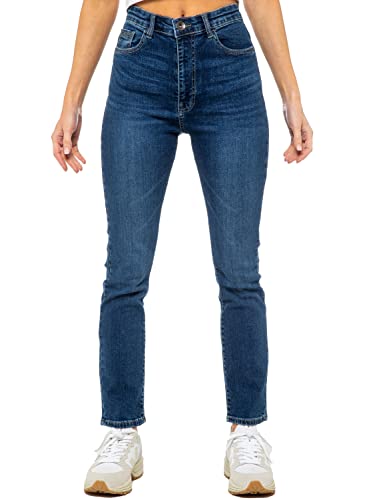 989Zé ENZO Ladies Jeans Stretch Slim Straight Leg Cotton Casual Denim Pants with Pockets EZL423 Jeans Dark Blue 14
