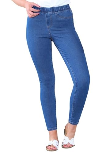 Roman Originals Knee Length Jeggings for Women Ladies Stretch Denim Shorts Jeans Cropped Trouser Capri Pants Summer Cotton Legging Pedal Pusher Legged Crop Spring Cutoff Work - Denim - Size 18