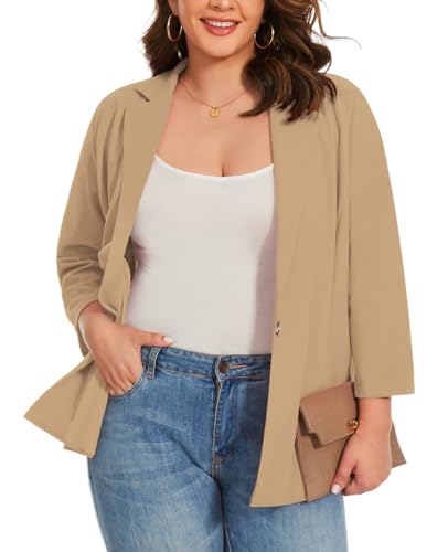LADI TREND Ladies 3/4 Sleeve Plus Size Summer Lightweight Jackets Beige Half Lined Stretch Outerwear Womens Breathable Casual Job Blazers (Beige 2XL)