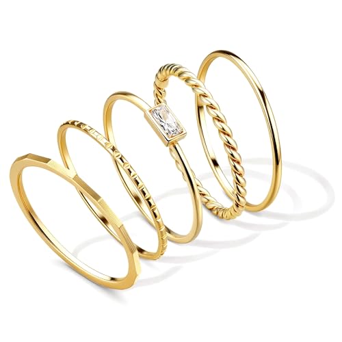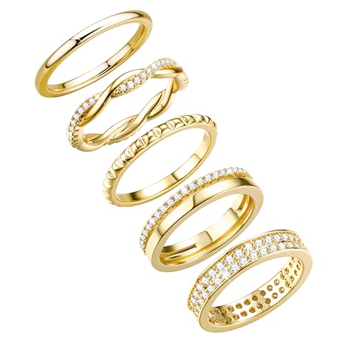Gold Stackable Rings for Women Non Tarnish - 14k Gold Plated Stacking Chunky Cubic Zirconia Thumb Ring Set 2-4mm Ladies Gold Rings Wedding Bands Women Statement Engagement Promise Ring Size 5