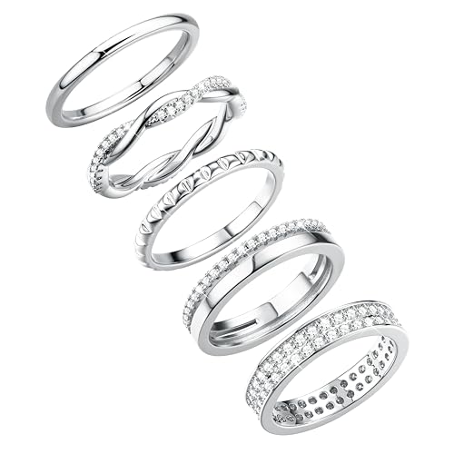 WBDWWTD 5 Pcs Silver Rings for Women Non-Tarnish Stainless Steel Ring Set 1mm Stacking Square CZ Simple Finger Ring Pinky Thumb Rings for Women Men Ladies Jewellery Gifts Gold/Silver Size 5-11