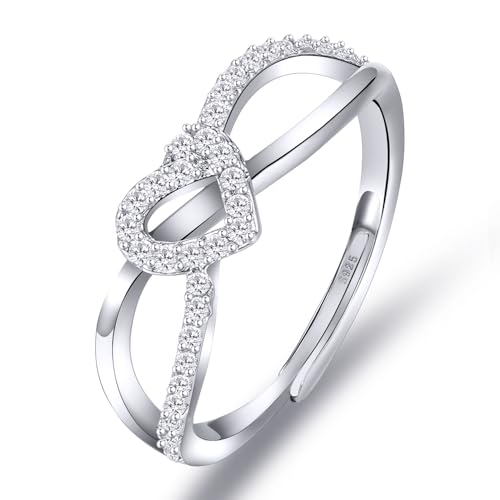 GMEDRIDAS Silver Rings for Women Adjustable Ladies Rings,White Heart Cubic Zirconia Birthstone Thumb Ring Wedding Rings Engagement Rings Gift for Women