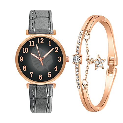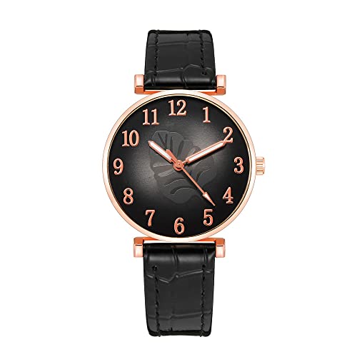 OSOLVE Men's Watch Fashion Dresses for Women 2023 Women Brands Watches Luxury Digital Leaves Ladies Quartz Watch Black Leather Clock