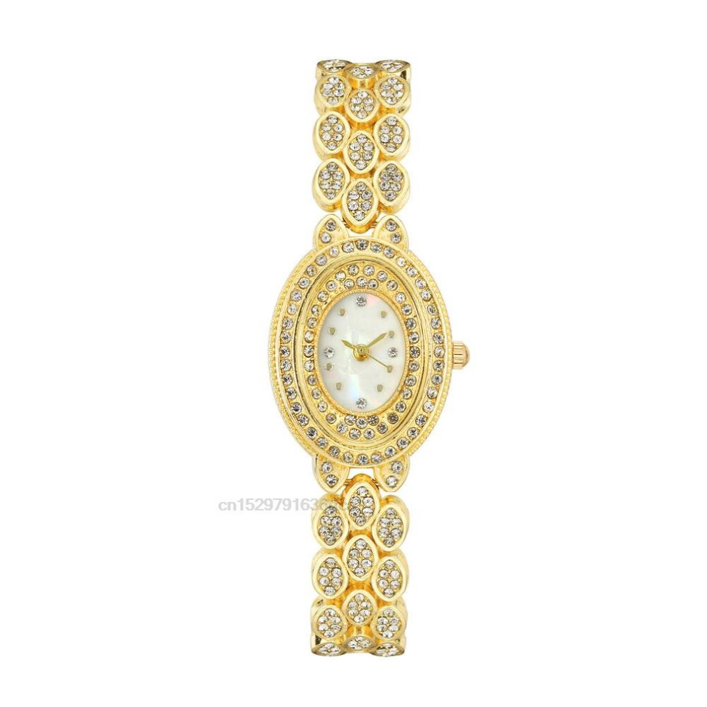 Brands Alloy Oval Quartz Watch With Diamonds Ladies' Casual Stainless Steel Watches With Colour Diamond Strap