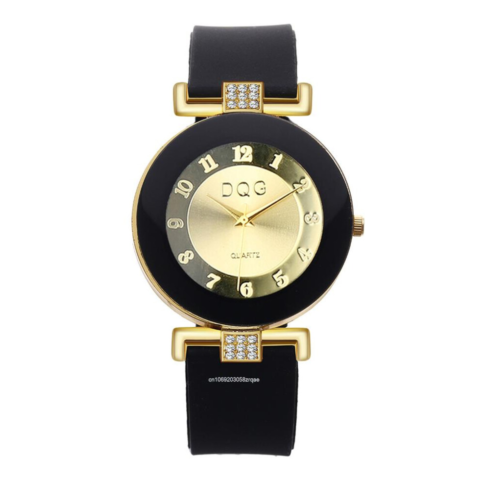(Black) 2024 Fashion Luxury Simple Brands Large Dial Design Women Quartz Watches Casual Black Silicone Strap Ladies Watch Clock