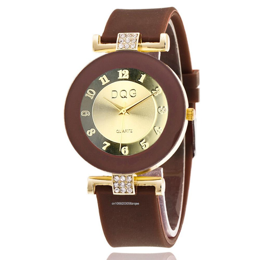 (Brown) 2024 Fashion Luxury Simple Brands Large Dial Design Women Quartz Watches Casual Black Silicone Strap Ladies Watch Clock