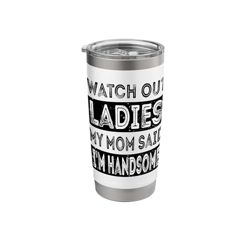 Watch Out Ladies My Mom Said I'm Handsome Funny Vintage Son Stainless Steel Insulated Tumbler
