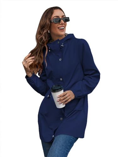 SotRong Women's Outdoor Waterproof Jackets Ladies Lightweight Packaway Raincoat Windbreaker Outdoor Quick Dry Rain Jacket Windproof Casual Zipper Windbreaker Trench Cost with Hood Navy Blue S