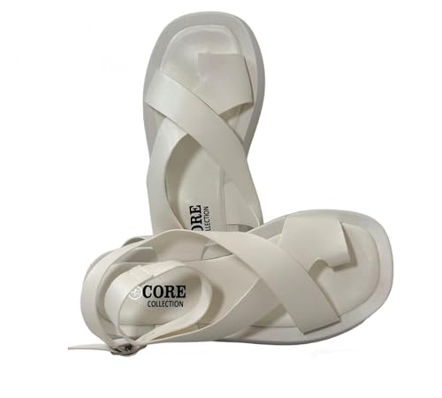 CORE COLLECTION Women's Platform Chunky Sandals,Ankle Strap, Open Toe Ladies Gladiator Sandals (WHITE CROSS, UK Footwear Size System, Adult, Women, Numeric, Medium, 5)