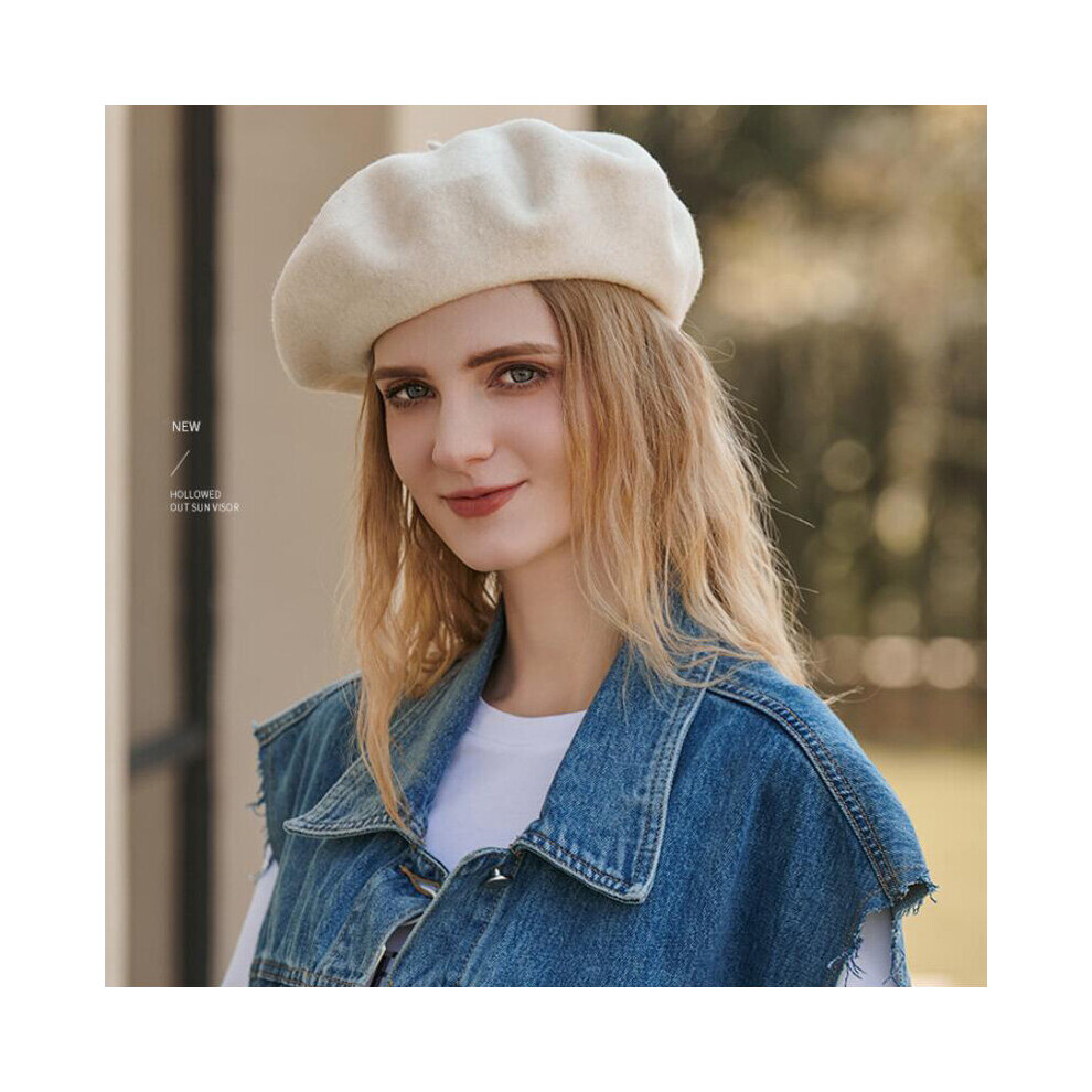 Women Girls Beret French Plain Wool Caps Warm Winter Beanie Hat Vintage Berets Solid Ladies Winter Hats Caps