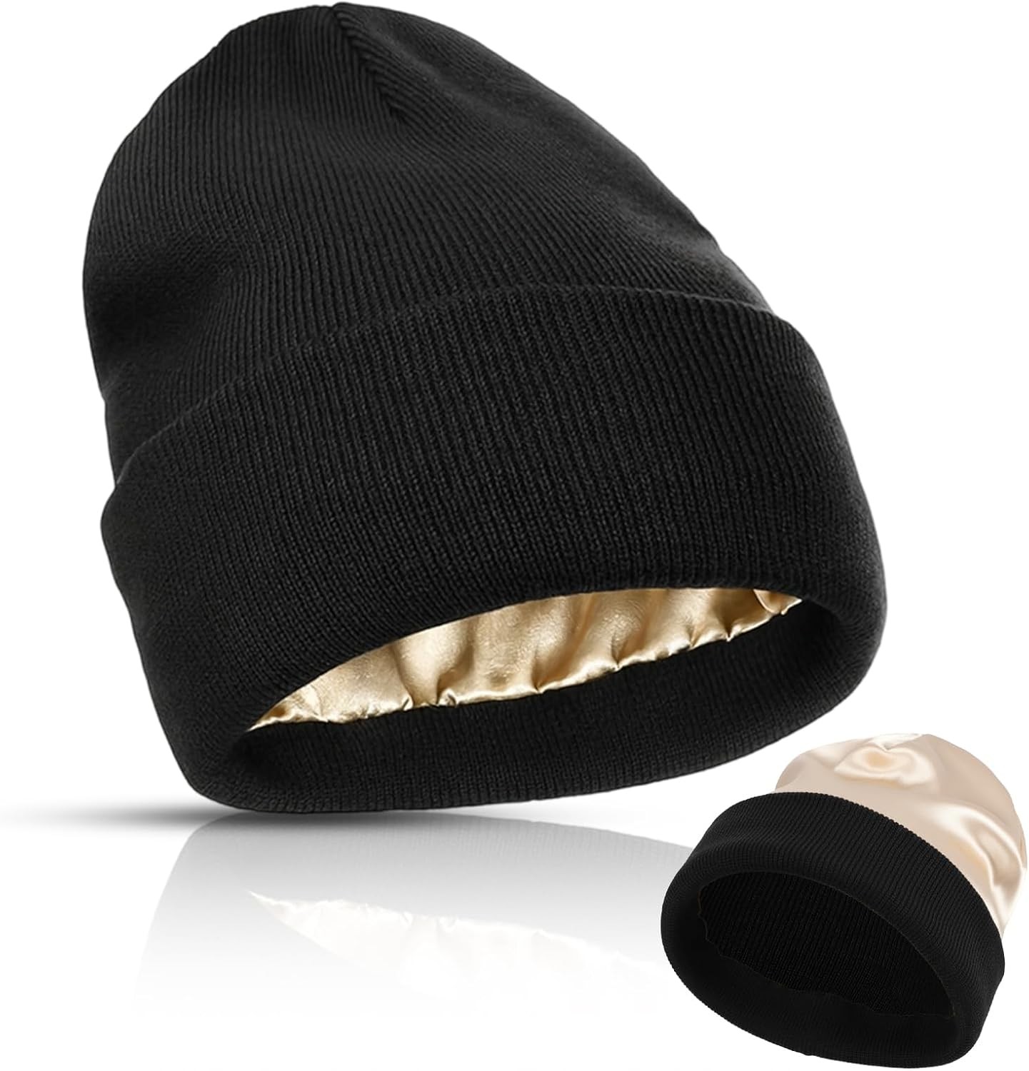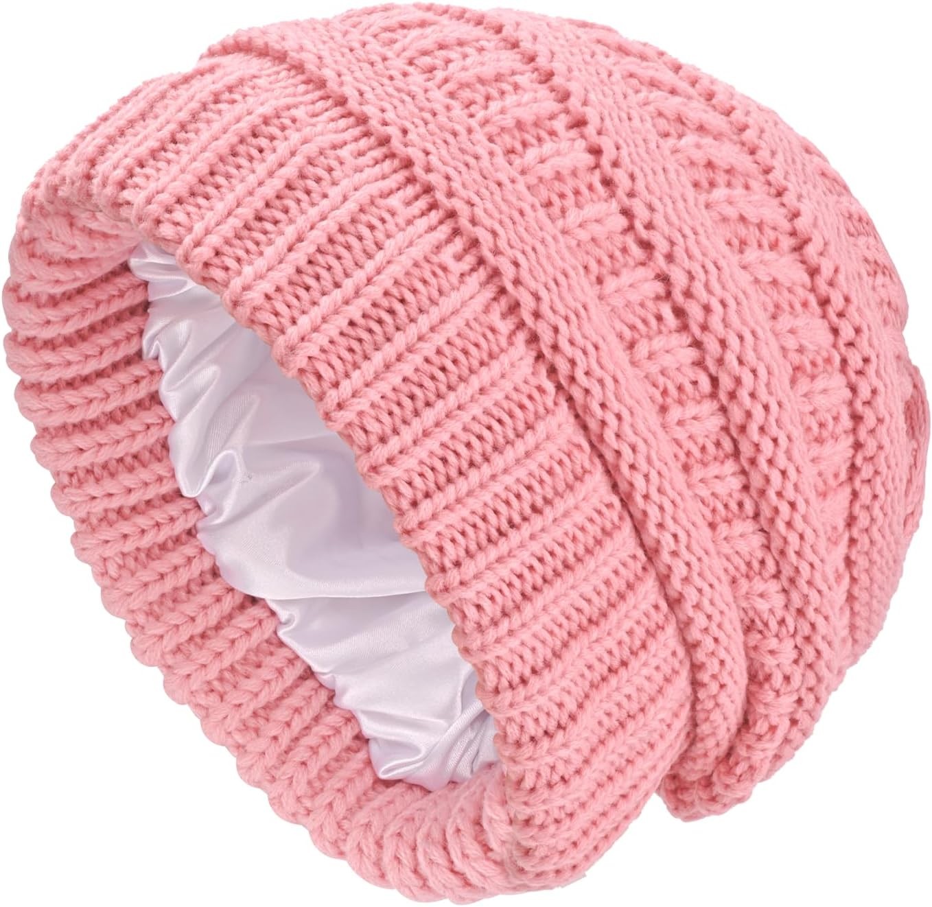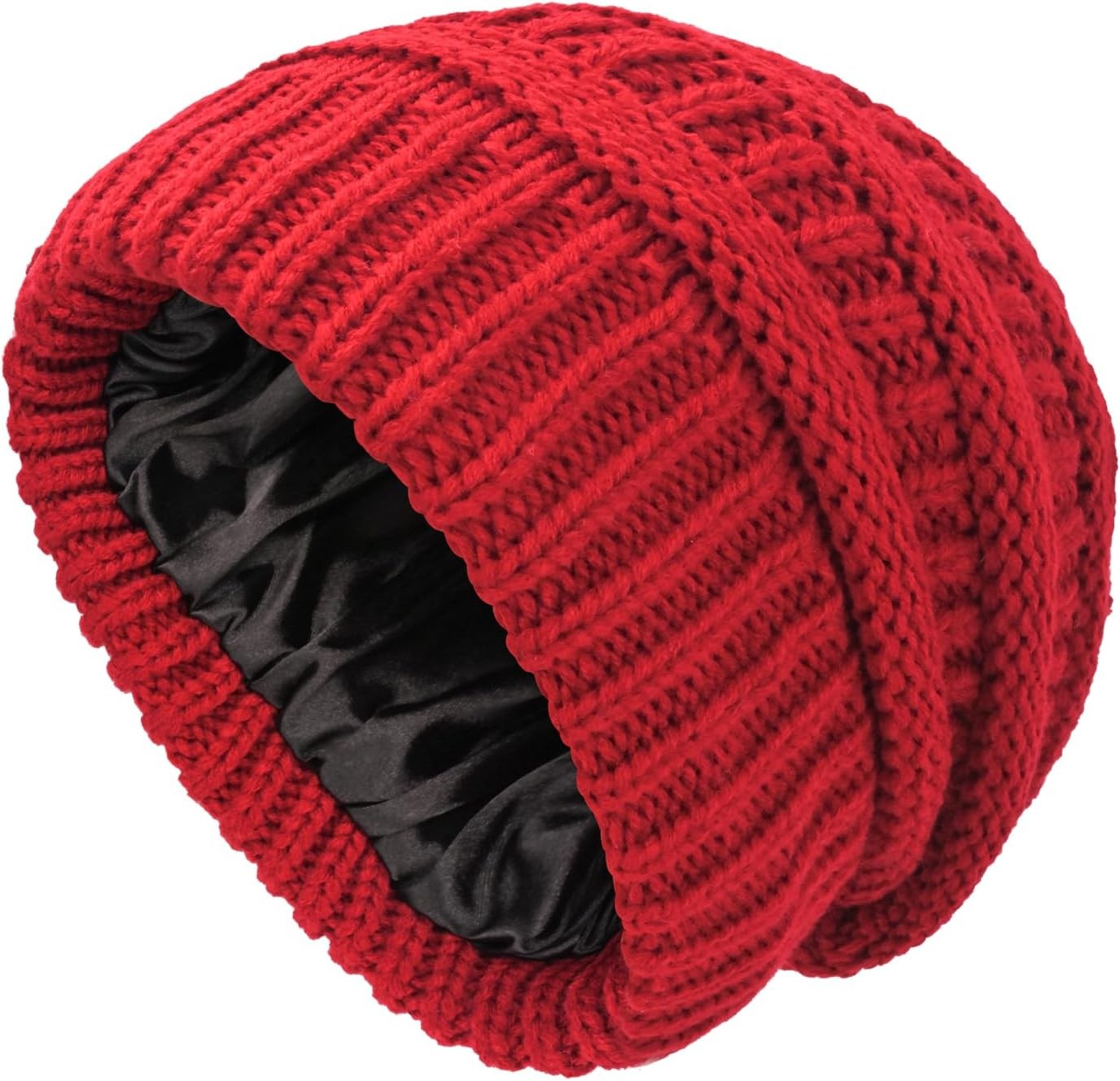 Satin Lined Beanie Hats for Women, Warm Slouchy Ladies Winter Hats, Classic Fash