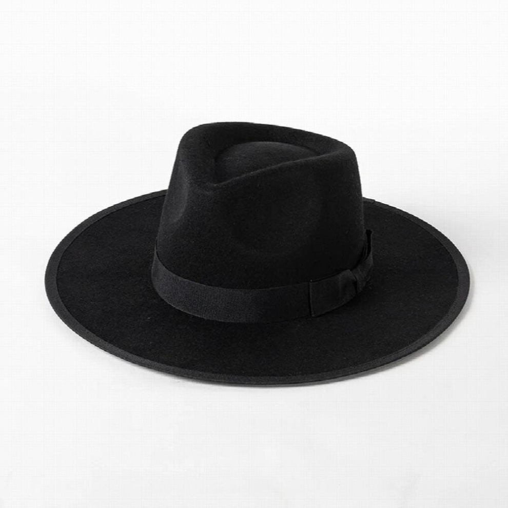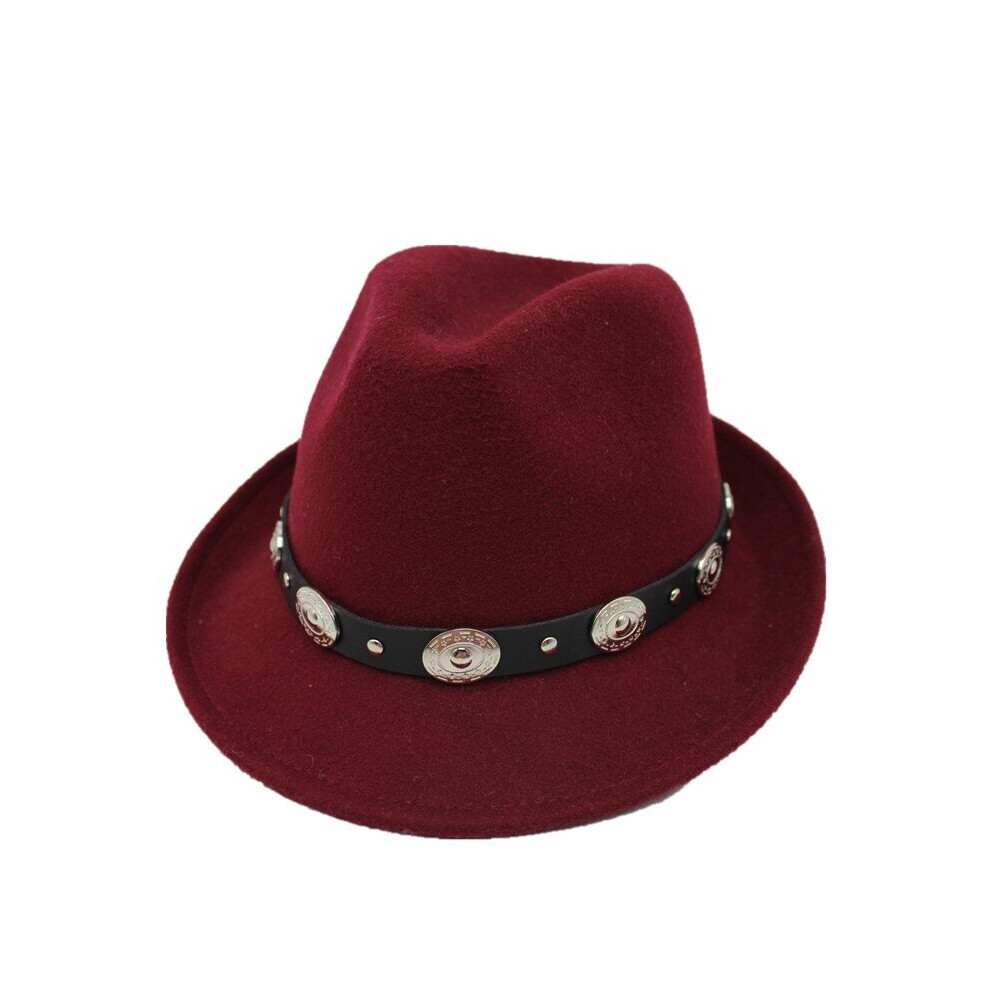British Style Wool Jazz Cap Hat for Women Vintage Utumn Winter Ladies Fedora Hats with Metal Belt Female curled Brim Hat