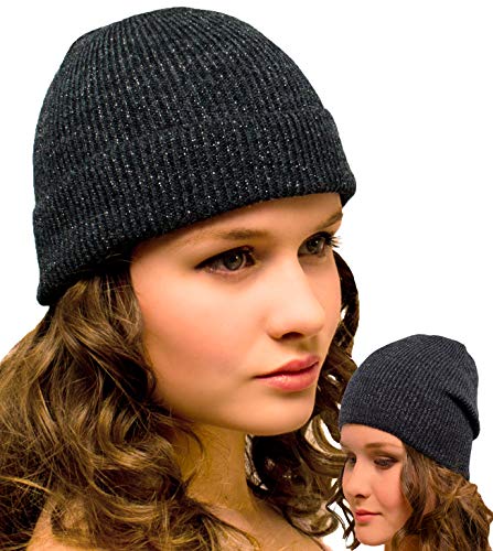 Entire Empire Grey Beanie Sparkly Shiny Winter Hat - Woolly hat for Women - Winter Ladies Hats with Shiny Glitter Metallic Sparkle Woman (Grey)