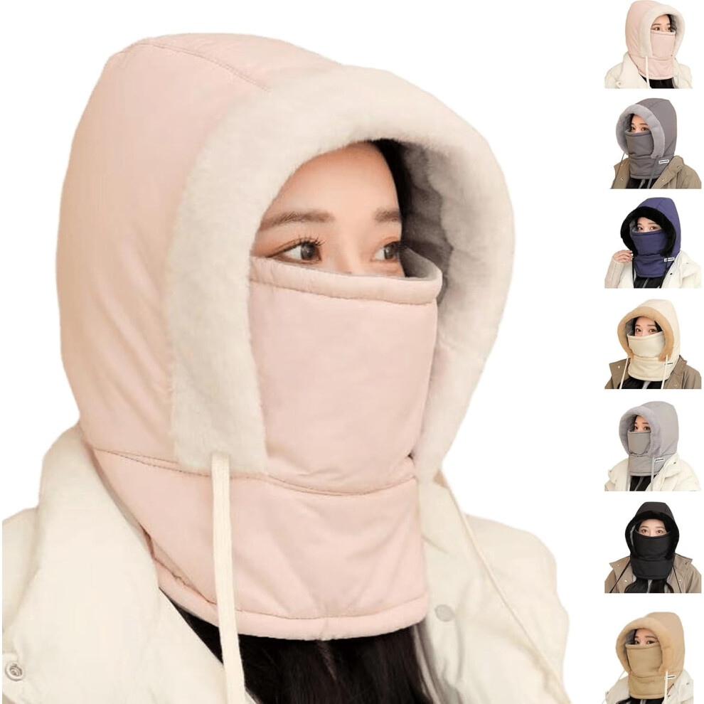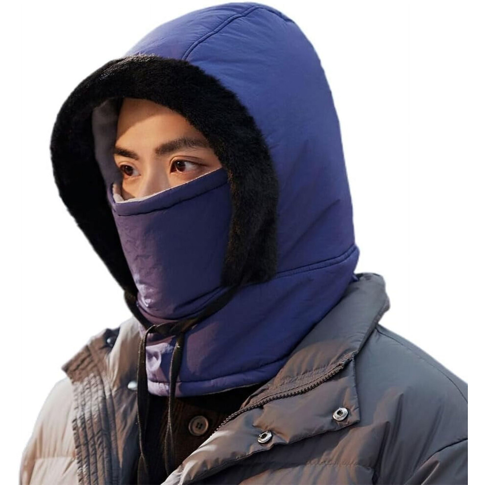 Plush Warm Full Coverage Windproof Hat with Earflaps,Mens Ladies Winter Hats for Cold,Wind-Resistant Face Mask Ski mask