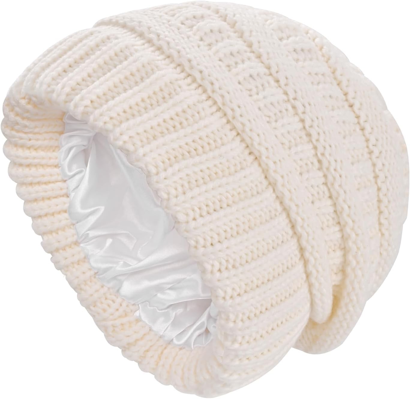 Satin Lined Beanie Hats for Women, Warm Slouchy Ladies Winter Hats, Classic Fas