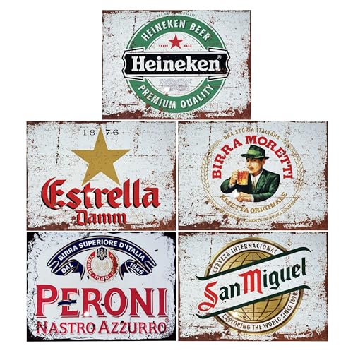 Vintage Metal Beer Sign Collection (5 pack), Pub Signs, Man Cave, Gift for Him, Lager Signs, Home Pub, Bar Decorations, Indoor and Outdoor, Beer Garden