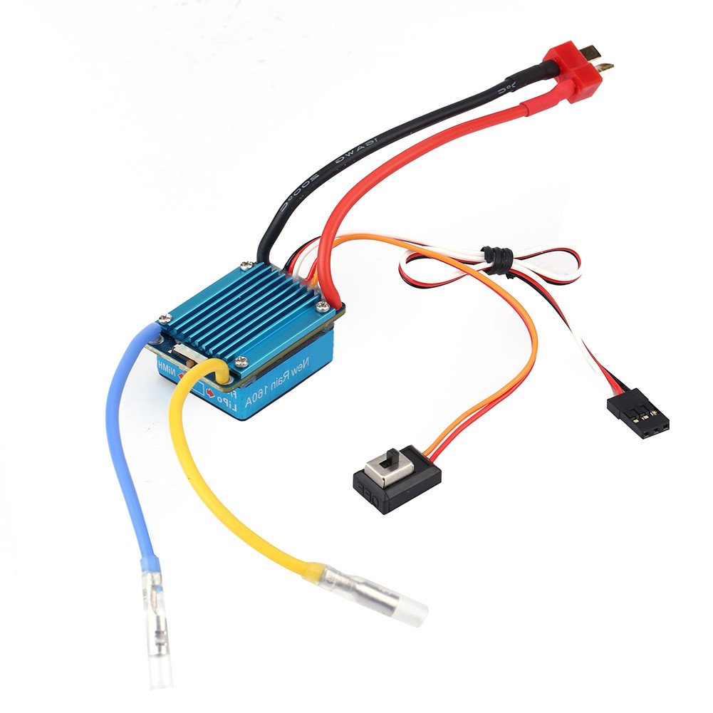 3S 160a Waterproof Brushed ESC, RC Car ESC Electronic Speed Controller Electric Regulation Optional Mode with 5V 1a BEC T Plug DIP Switch Settings Multiple Protection for 1/12 or Lager RC Car RC Boat