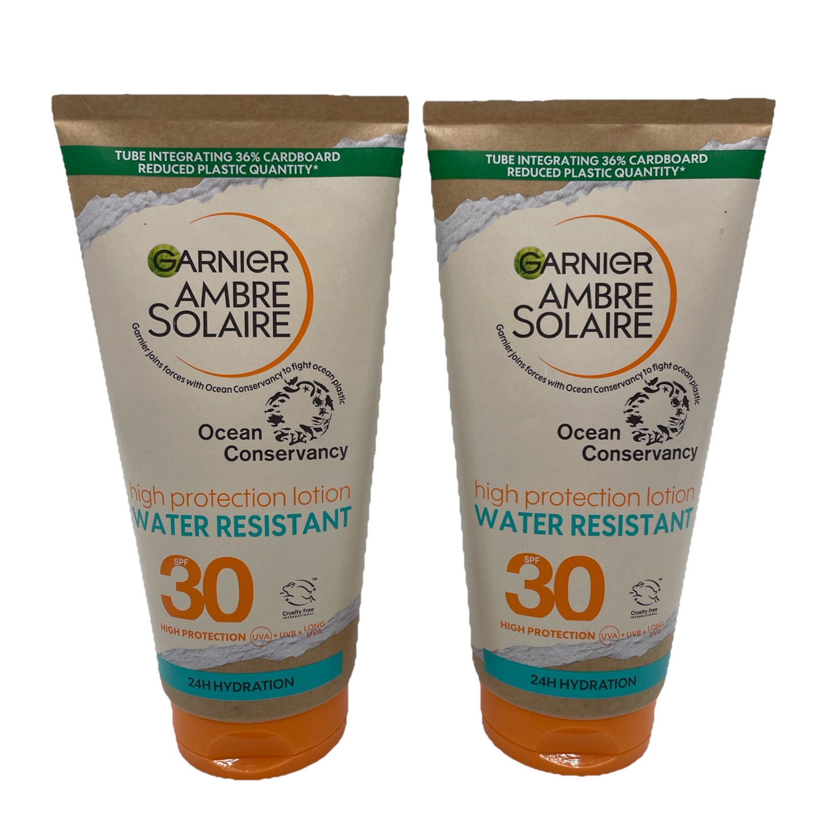 2 X Garnier Ambre Solaire 24 Hour Hydration Protection Lotion SPF30 Sun 50ml