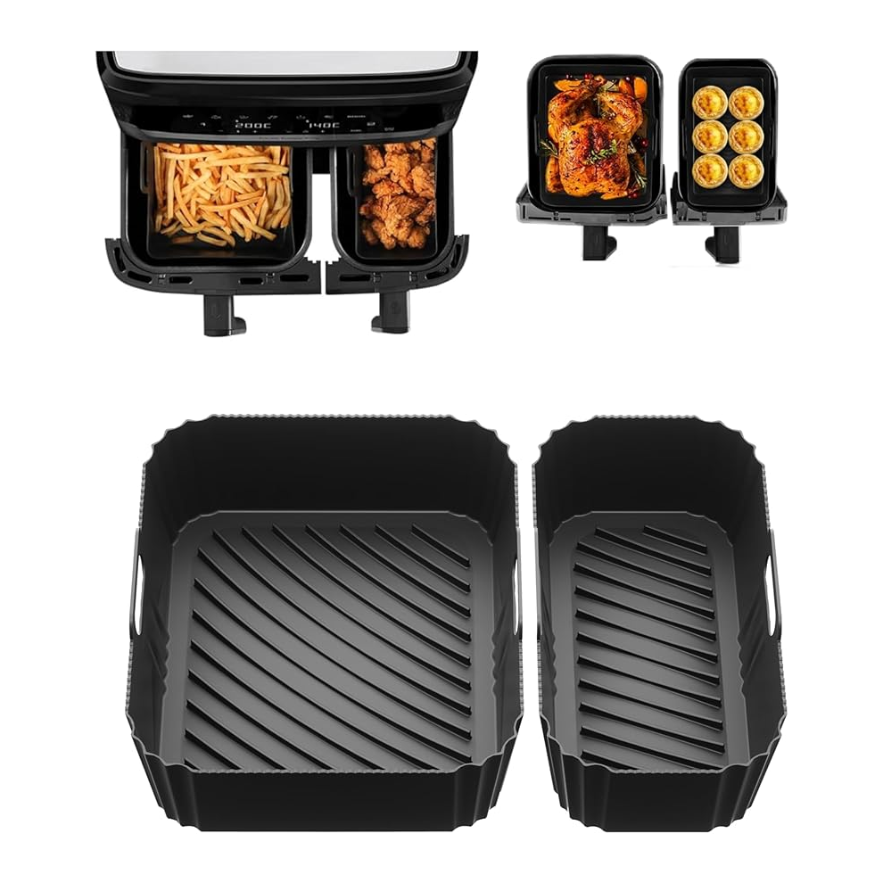 Silicone Air Fryer Liners, Food Grade Two Size Dual Air Fryer Liners Compatible with Tefal Easy Fry 8.3L, Lakeland Air Fryer 8L, Tower T17099