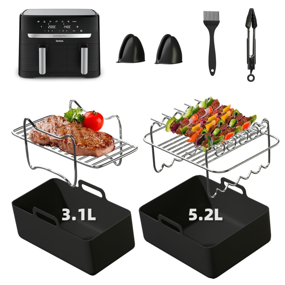 Reusable Air Fryer Liners for Tefal Easy Fry 5.2L/3.1L, Dual Air Fryer Accessories Air Fryer Silicone Liners Reusable Air Fryer Inserts for Lakeland