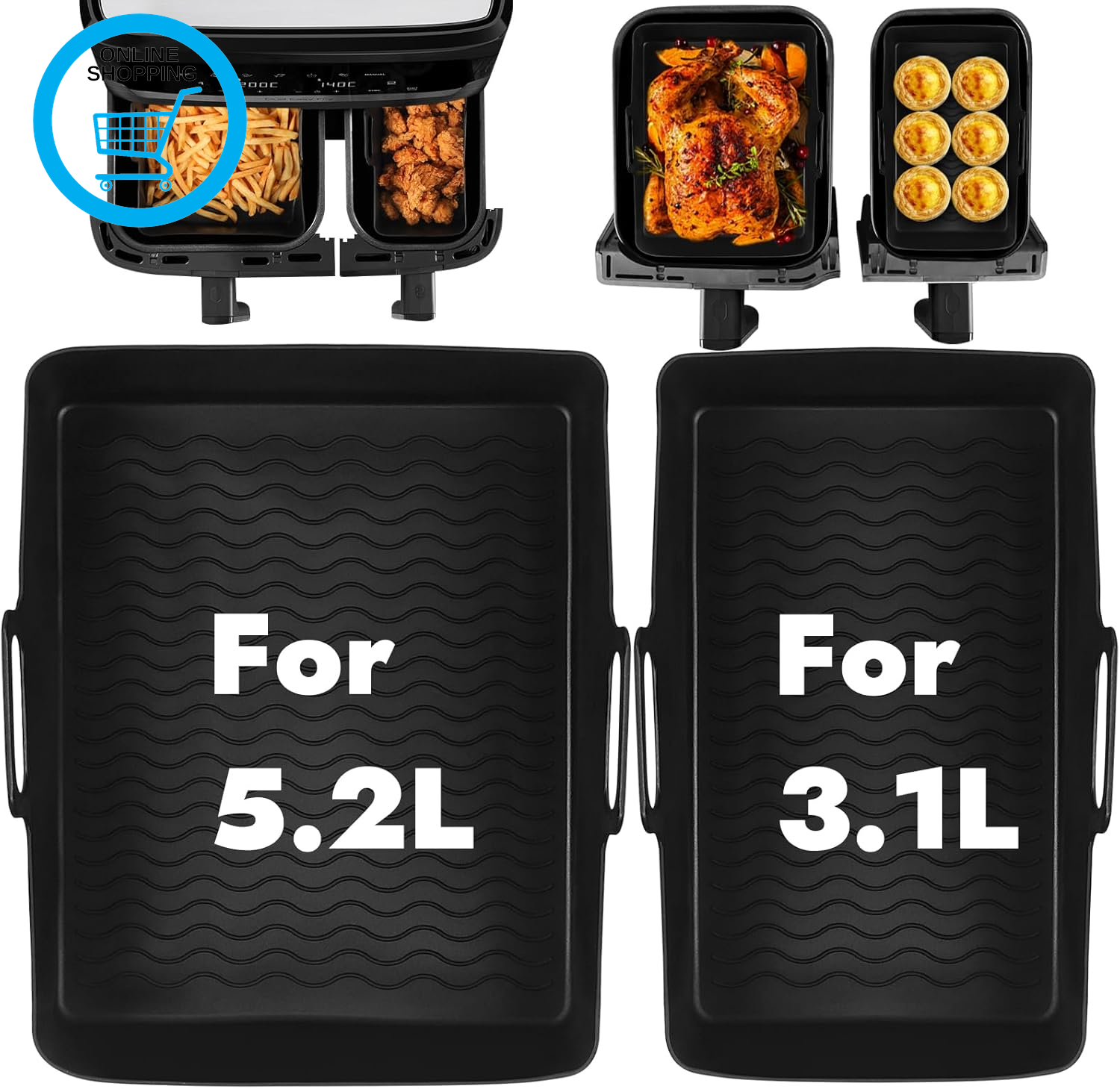 2Pcs Silicone Air Fryer Liners for Tefal Easy Fry 5.2L/3.1L, Dual Drawer Air Fryer Accessories Airfryer Liners for Lakeland 5L/3L, Salter