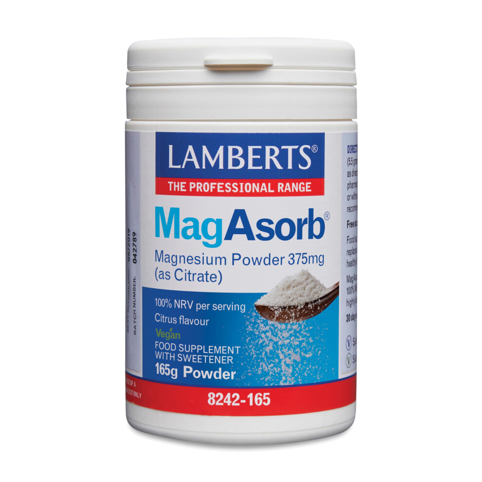 Lamberts MagAsorb Magnesium Powder â 375mg Magnesium as Citrate â Highly Absorbable â 165g
