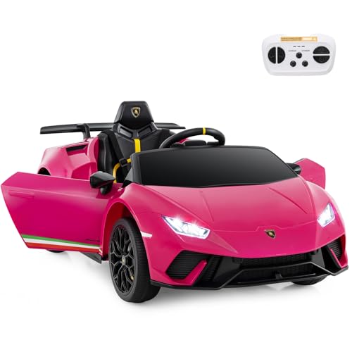 COSTWAY 12V Kids Electric Ride on Car with Remote Control, LED Lights, MP3, Music, Horn, Soft Start & Spring Shock Absorbers, Licensed Lamborghini Battery Powered Toy Vehicle for Boys Girls (Pink)