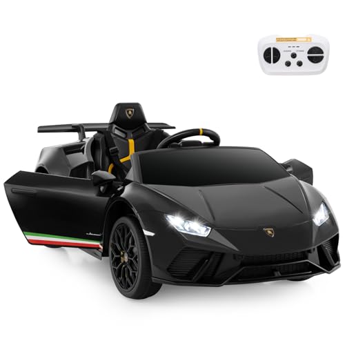 COSTWAY 12V Kids Electric Ride on Car with Remote Control, LED Lights, MP3, Music, Hydraulic Doors, 4 Motors Licensed Lamborghini Battery Powered Toy Vehicle for Boys and Girls (Black)