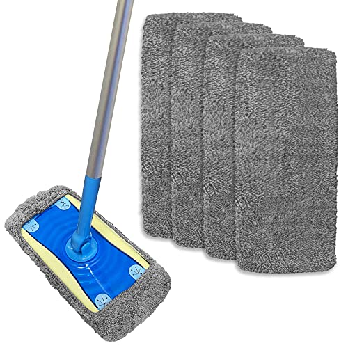 4 Pack Microfiber Mop Pads Replacement for Laminate Floor Mop - Reusable Head, Flash Refill Pads - Machine Washable, Ideal Floor Cleaner Flat Head for Wood, Tiles, Marble