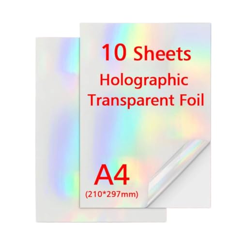 PrecisGear 10 Sheets A4 Glass Self Adhesive Laminating Sheets Holographic Film Paper Clear Overlay Compatible With Universal Fit Compatible with DIY Crafts Replacement