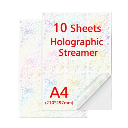 HAOCNC 10 Sheets A4 Shiny Stars Holographic Glitter Lamination Film Glass Heart Shape Cold Laminating Film For Photos DIY Color Card Compatible With Printer Supplies(Streamer)
