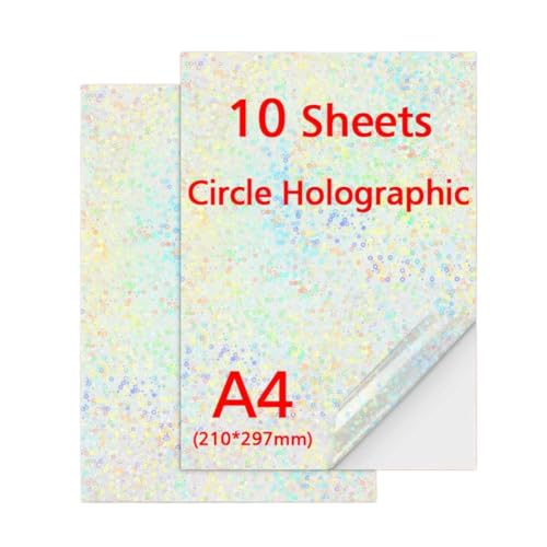 HAOCNC 10 Sheets A4 Self-adhesive Glitter Holographic Shiny Dots DIY Color Card Photo Laminating Film Compatible With Printer Supplies(Circle)