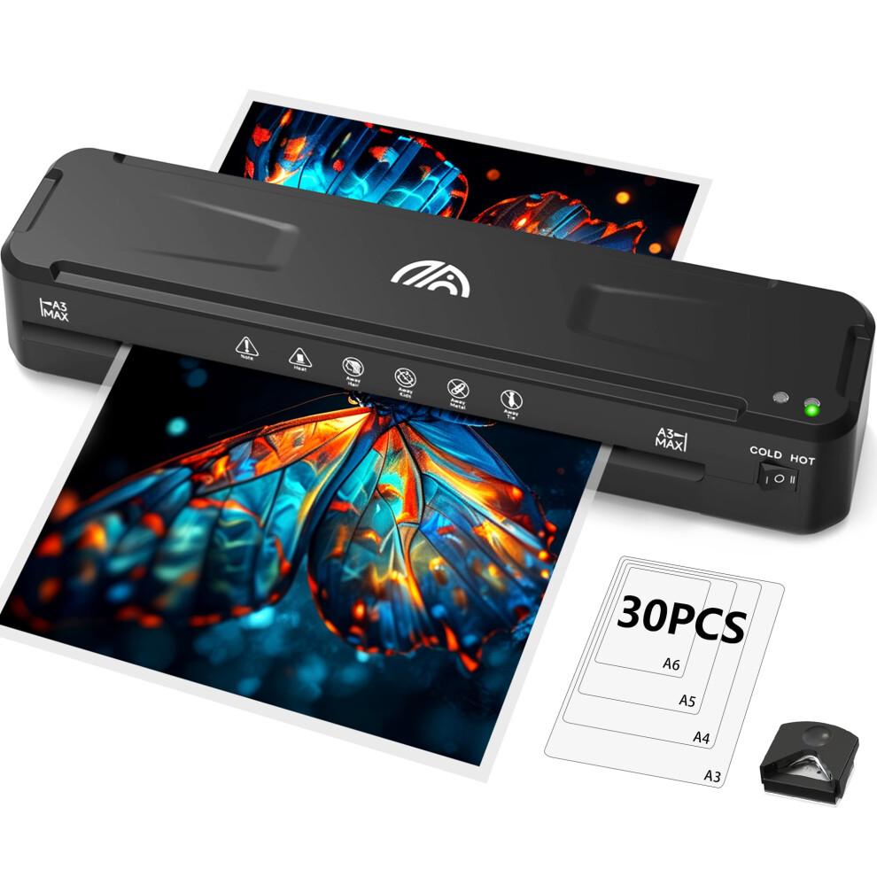 A3 Laminator Machine with 30 Laminating Sheets for A3/A4/A5/A6, Built-in Paper Cutter & Corner Rounder, Cold & Thermal Laminator for Classroom, Home Office, School