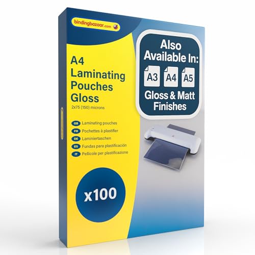 Binding Bazaar A4 Laminating Pouches, Gloss Finish, 150 Micron, 100 Laminating Sheets - Laminating Pouches to Enhance Your Words and Colours - Compatible with All Laminating Machines